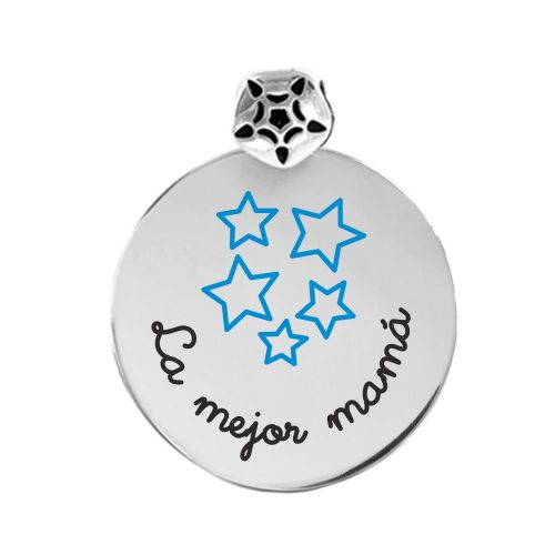 Colgante de plata de primera ley maciza, grabado, esmaltado, rodiado y con cierre de reasa.