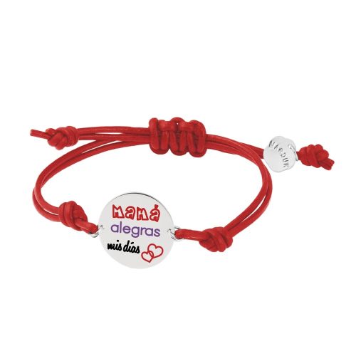 Pulsera con chapa de plata de primera ley maciza, grabada, rodiada , esmaltada y nailon de color.