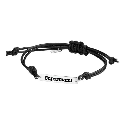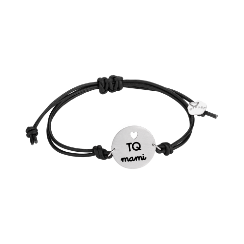 Pulsera de piel con chapa de plata de primera ley maciza, grabada, esmaltada y rodiada.