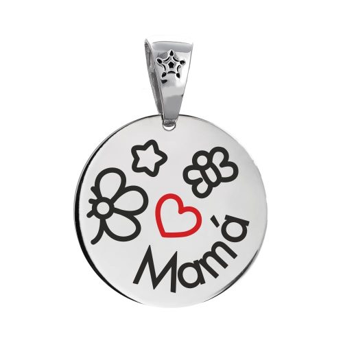 Colgante de plata de primera ley maciza, grabado, esmaltado y rodiado.